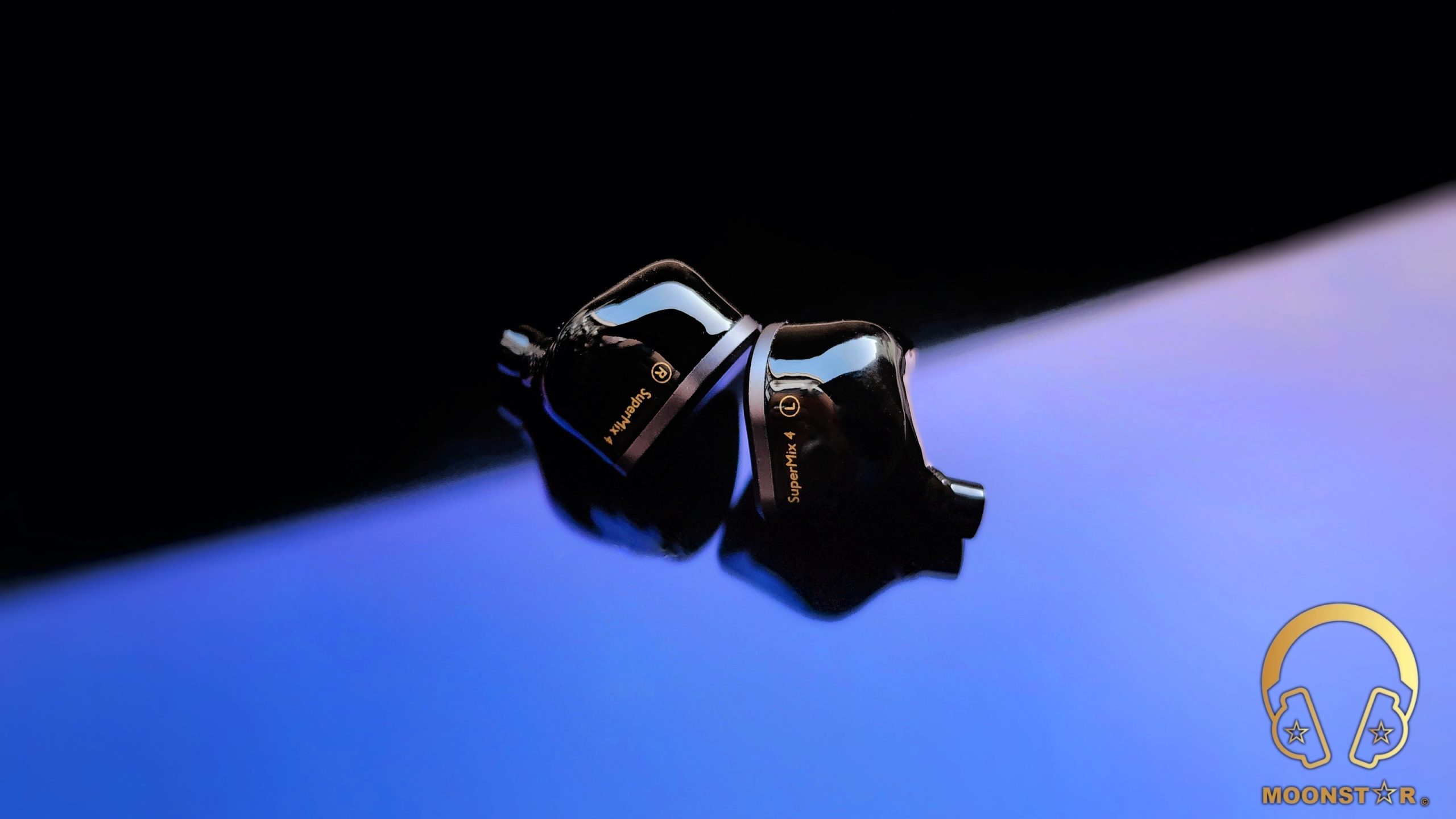 The SuperMix 4 presents a minimalist aesthetic with a black resin shell housing the driver configuration. This material choice offers a balance of durability and visual appeal.