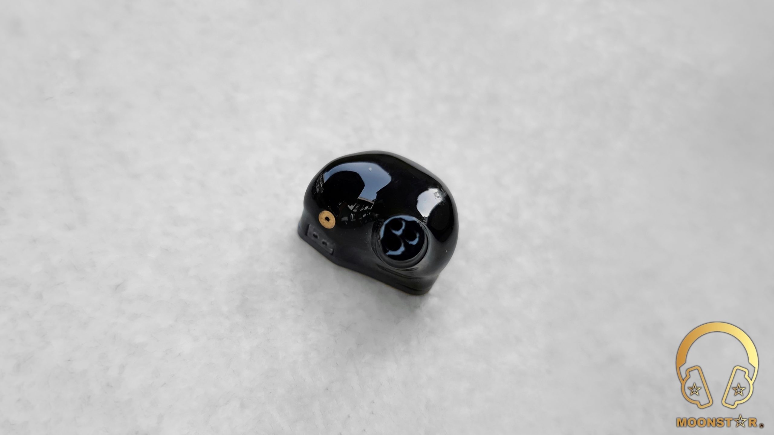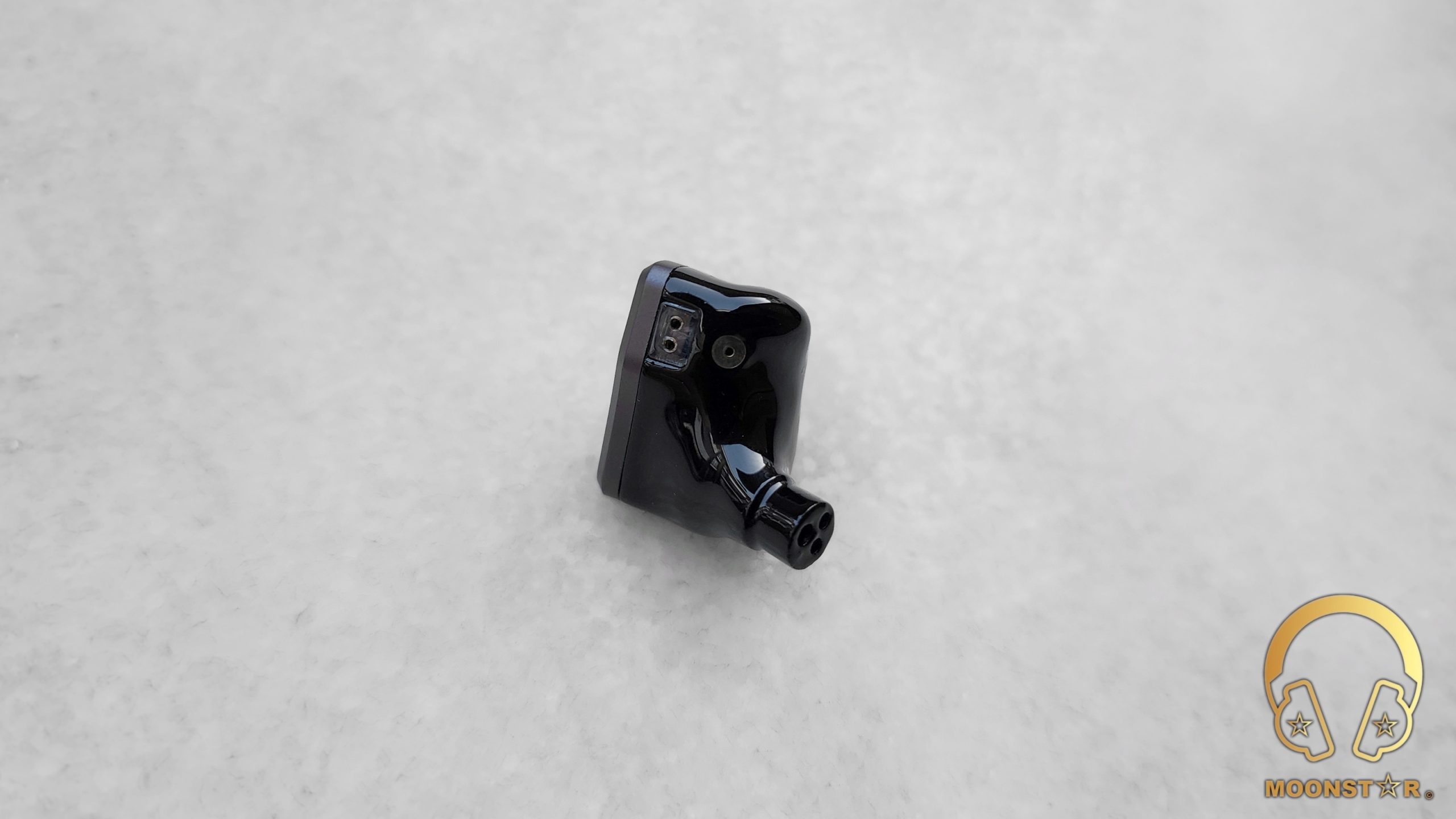 On the top of the monitor shells are the 2-Pin female connector that do offer a tight connection. Near the 2-pin connectors, there is a second, smaller acoustic port encircled by a ring in copper color.