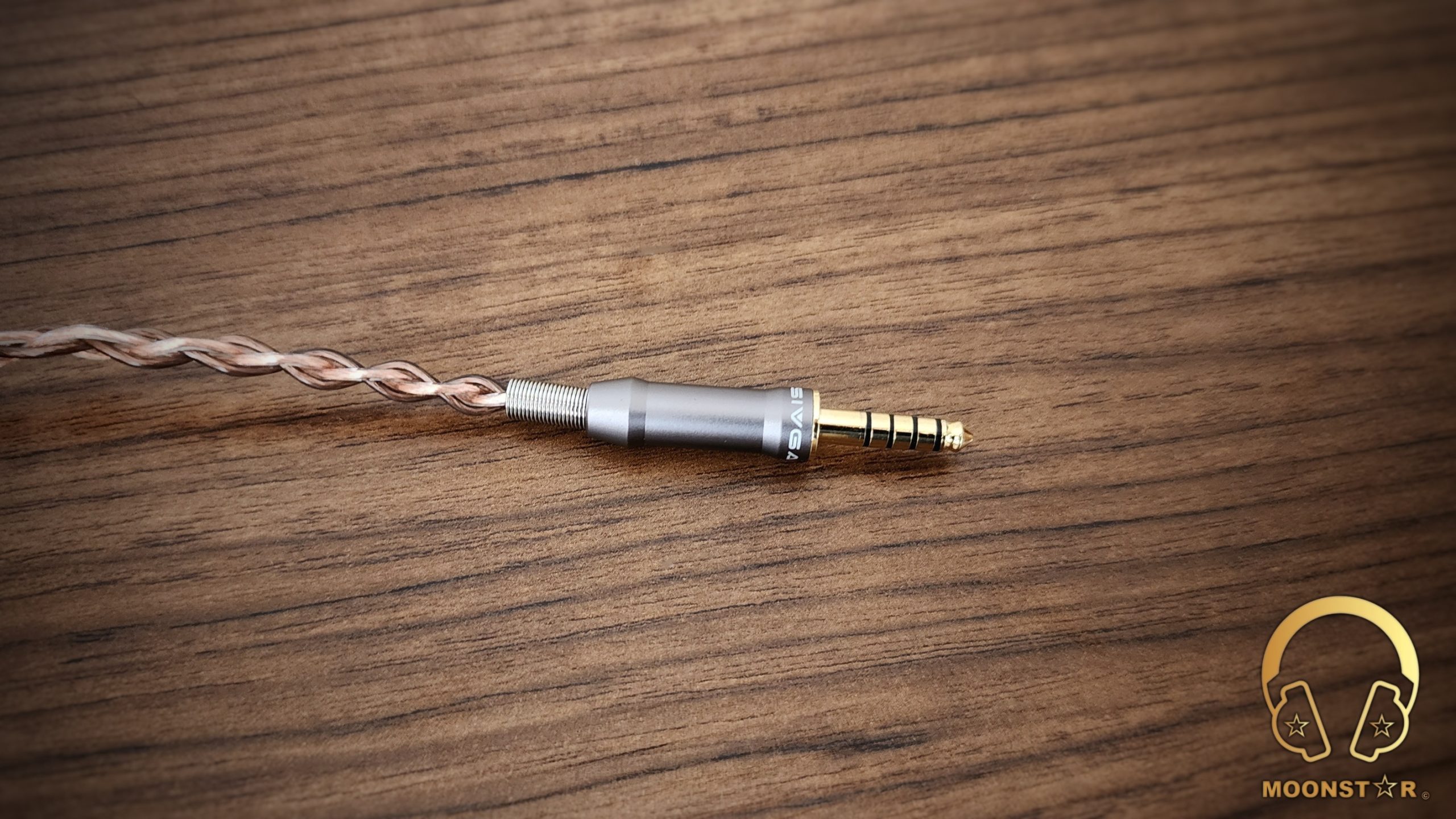 The cable features a 4.4mm Balanced headphone jack with a straight-profiled metal housing in black color that displays the SIVGA logo in white color. The headphone plug also features a flexible strain relief in the form of a spring for added protection.