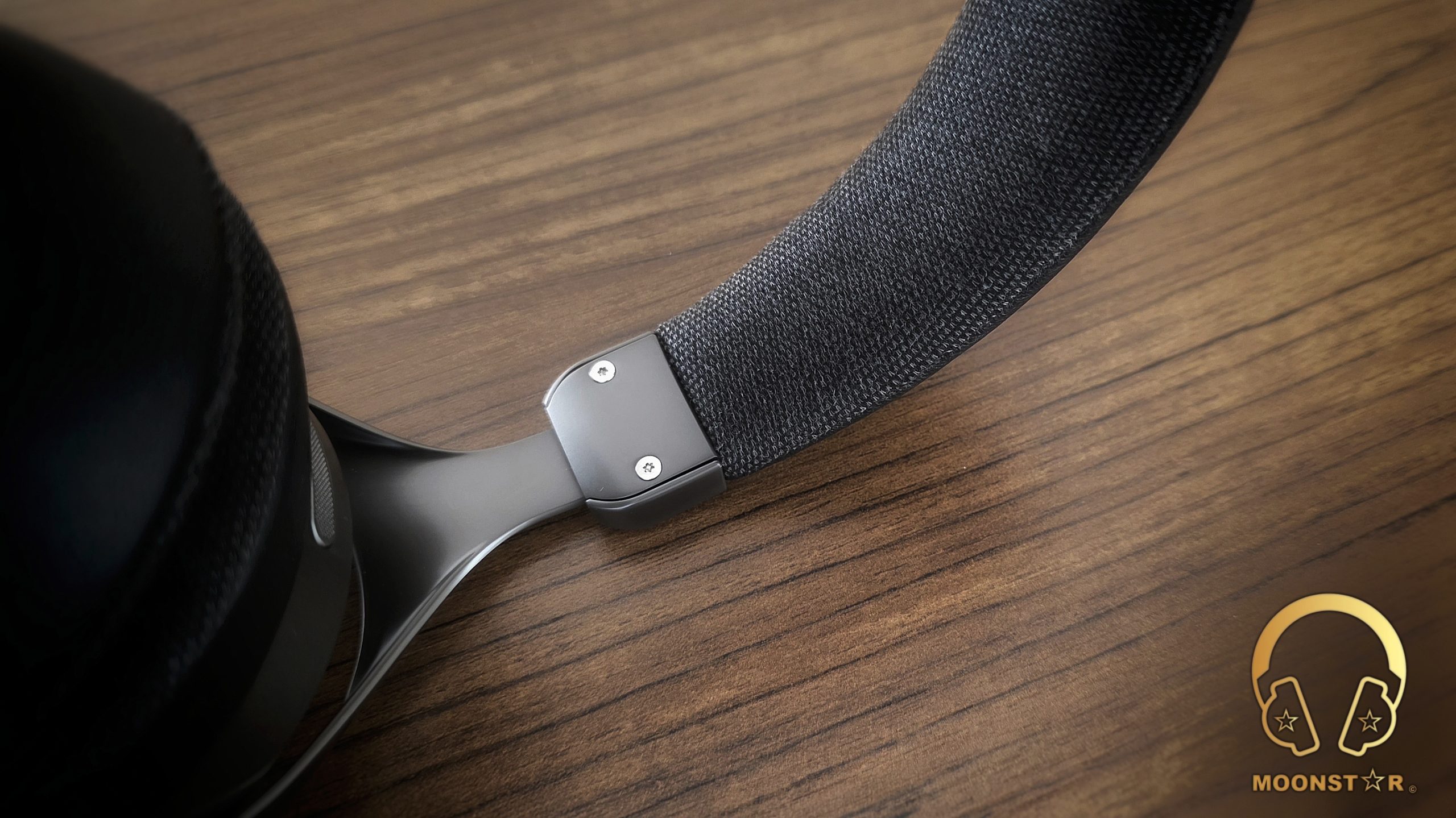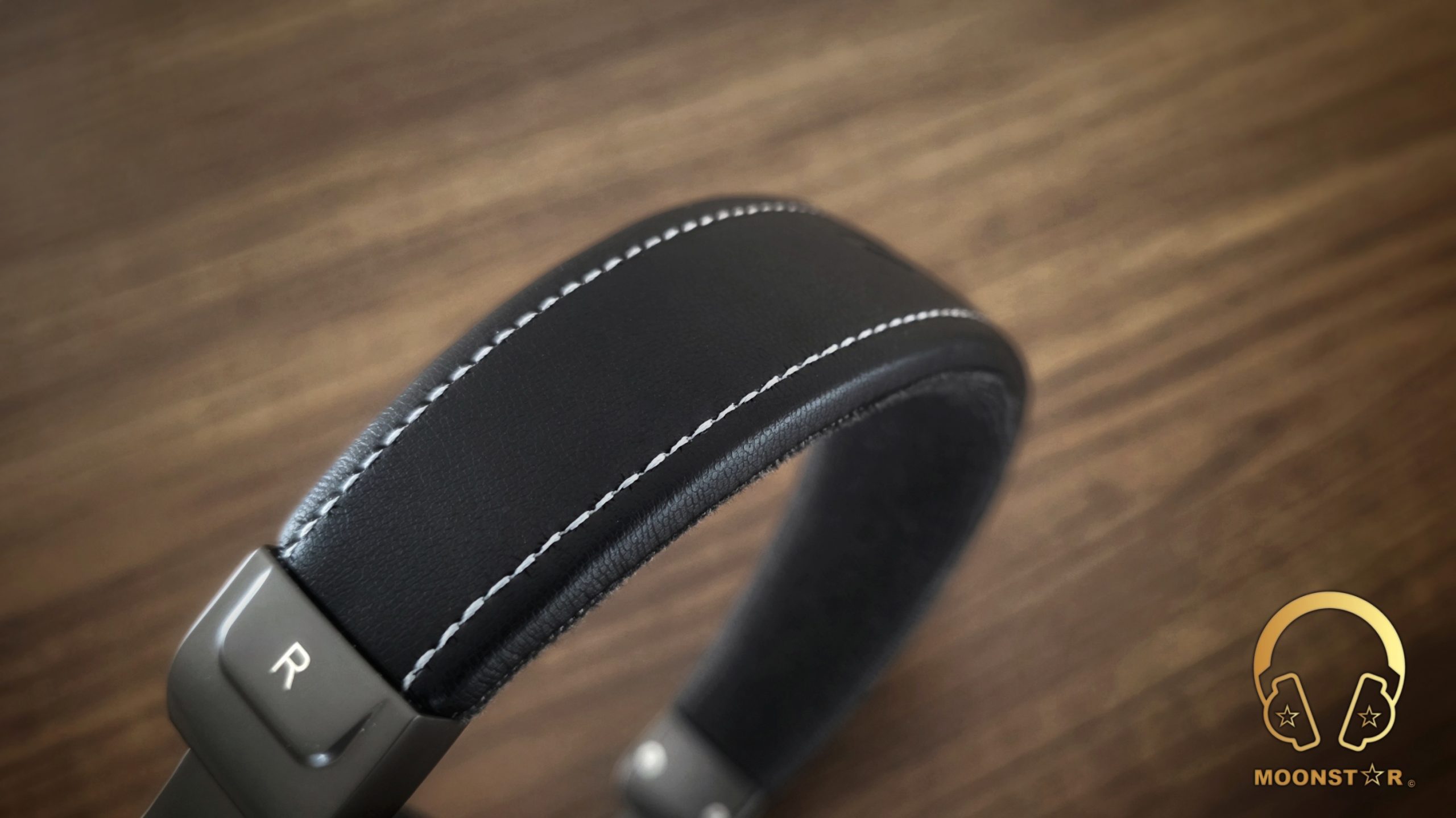 The stitching on the headband is neat and precise, and the adjustable sizing mechanism uses clearly marked notch steps that click firmly and hold their position without drifting. The fit and finish between components shows no significant gaps or misalignment, and the headphone does not creak or flex in an unsettling way during normal handling.