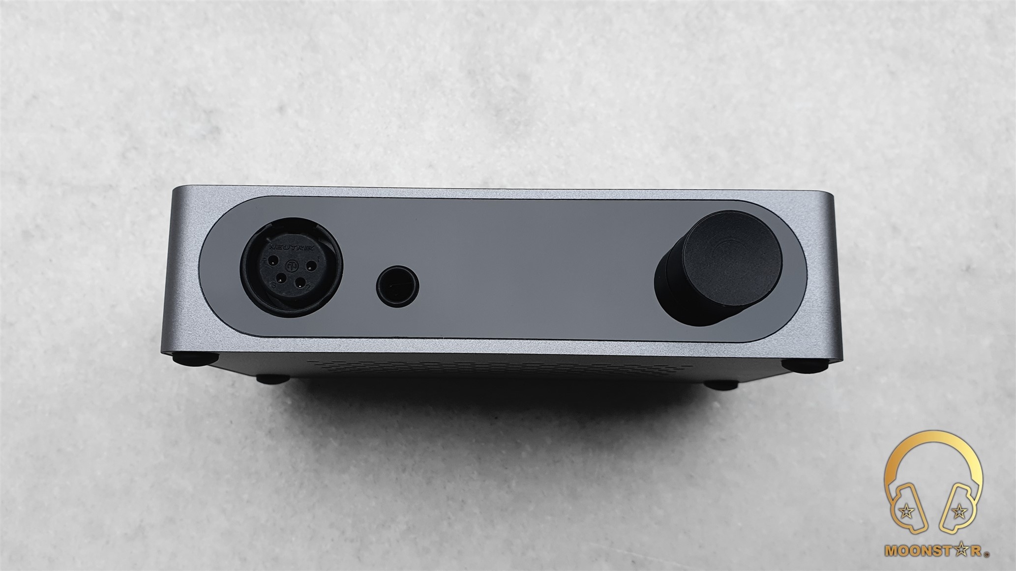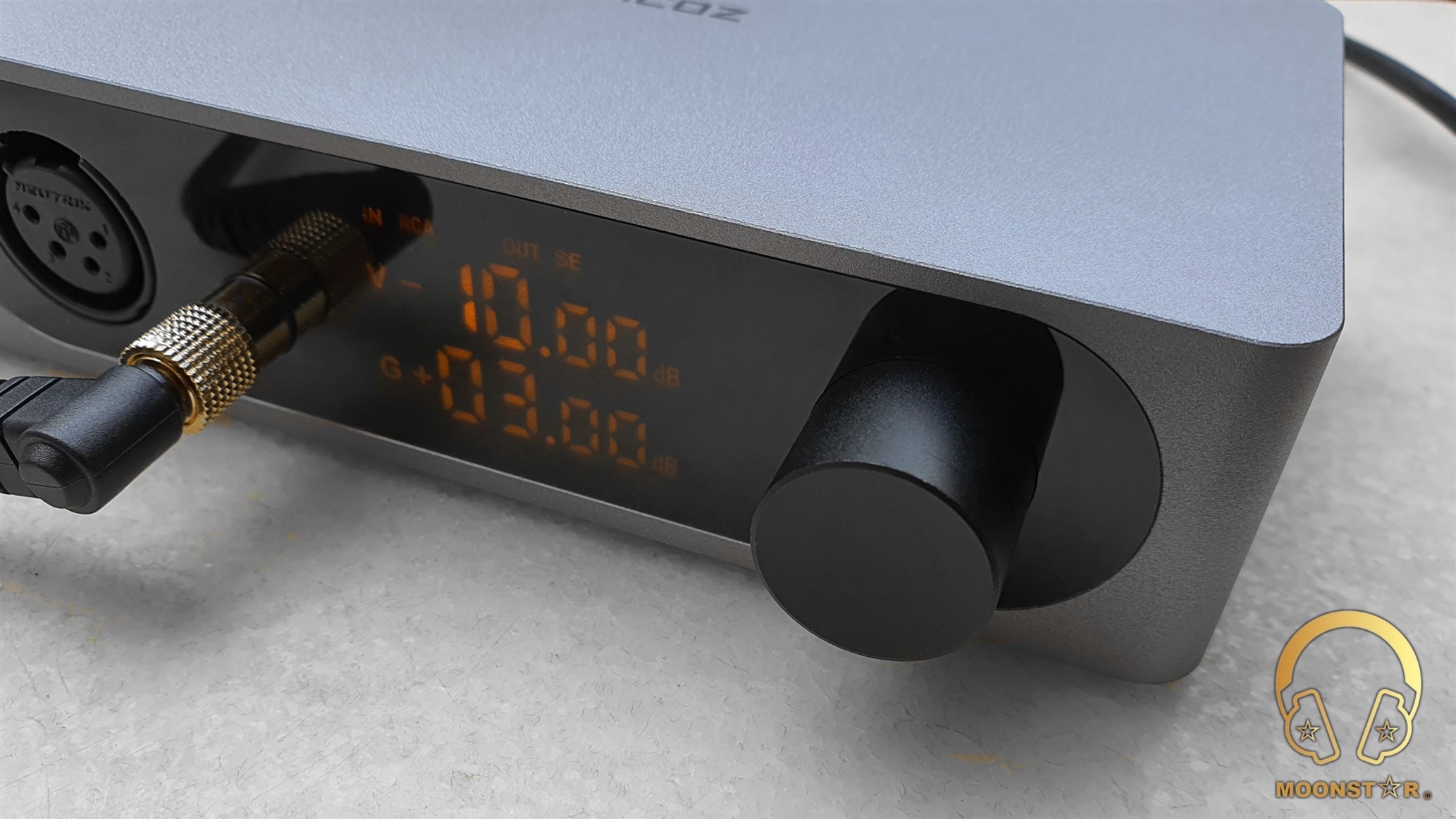 On the front of the device is a digital display, a multi functional volume wheel and the 4-Pin XLR Balanced & 6.35mm Single Ended outputs.