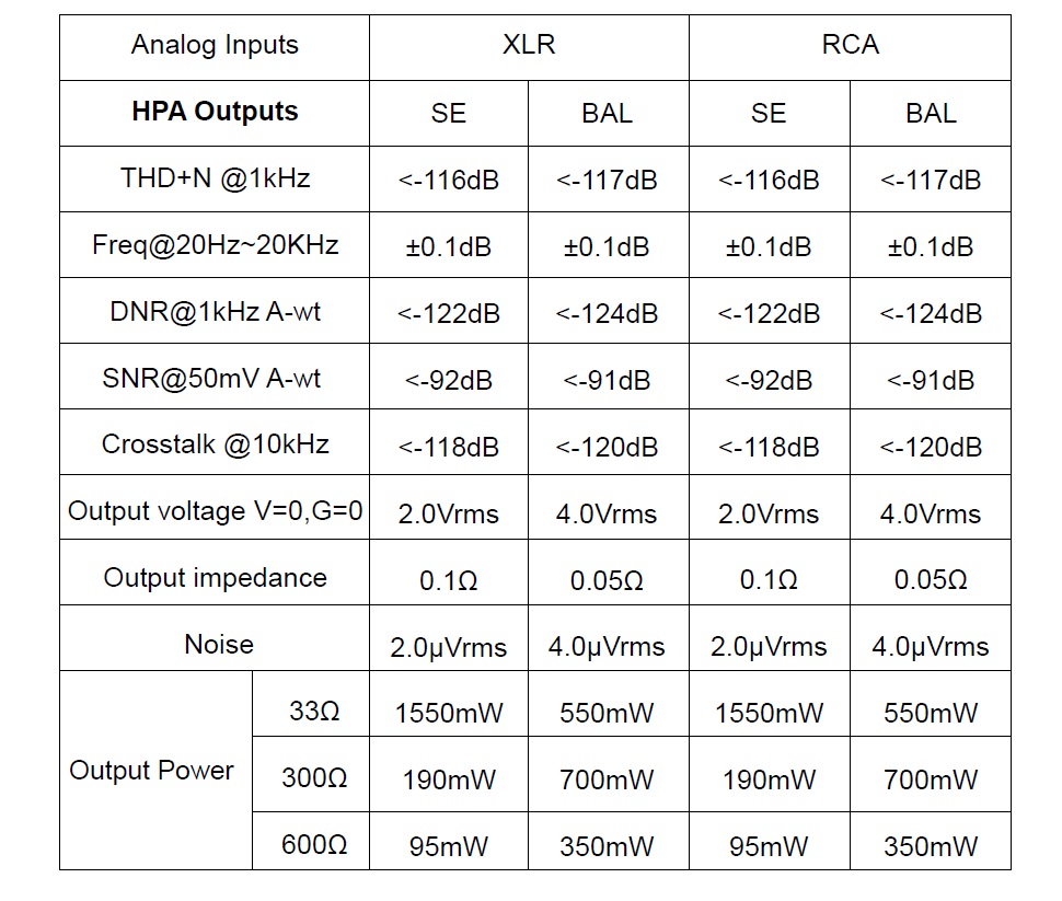 The QXA1 offers an up to 1500mW @ 33ohm and up to 350mW @ 600 ohm over the Balanced outputs. Detailed information’s can be found below;