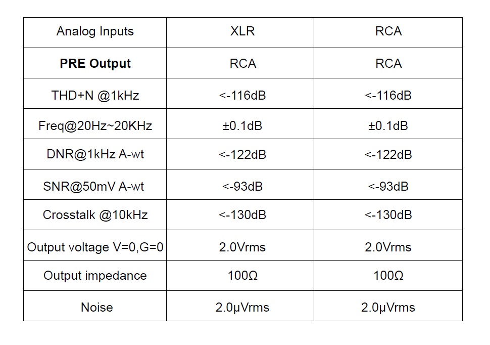 The rear side of the QXA1 features various output interfaces, which are the Left & Right XLR, Analog RCA (Left – Right) and PRE Output RCA (Left – Right) outputs.