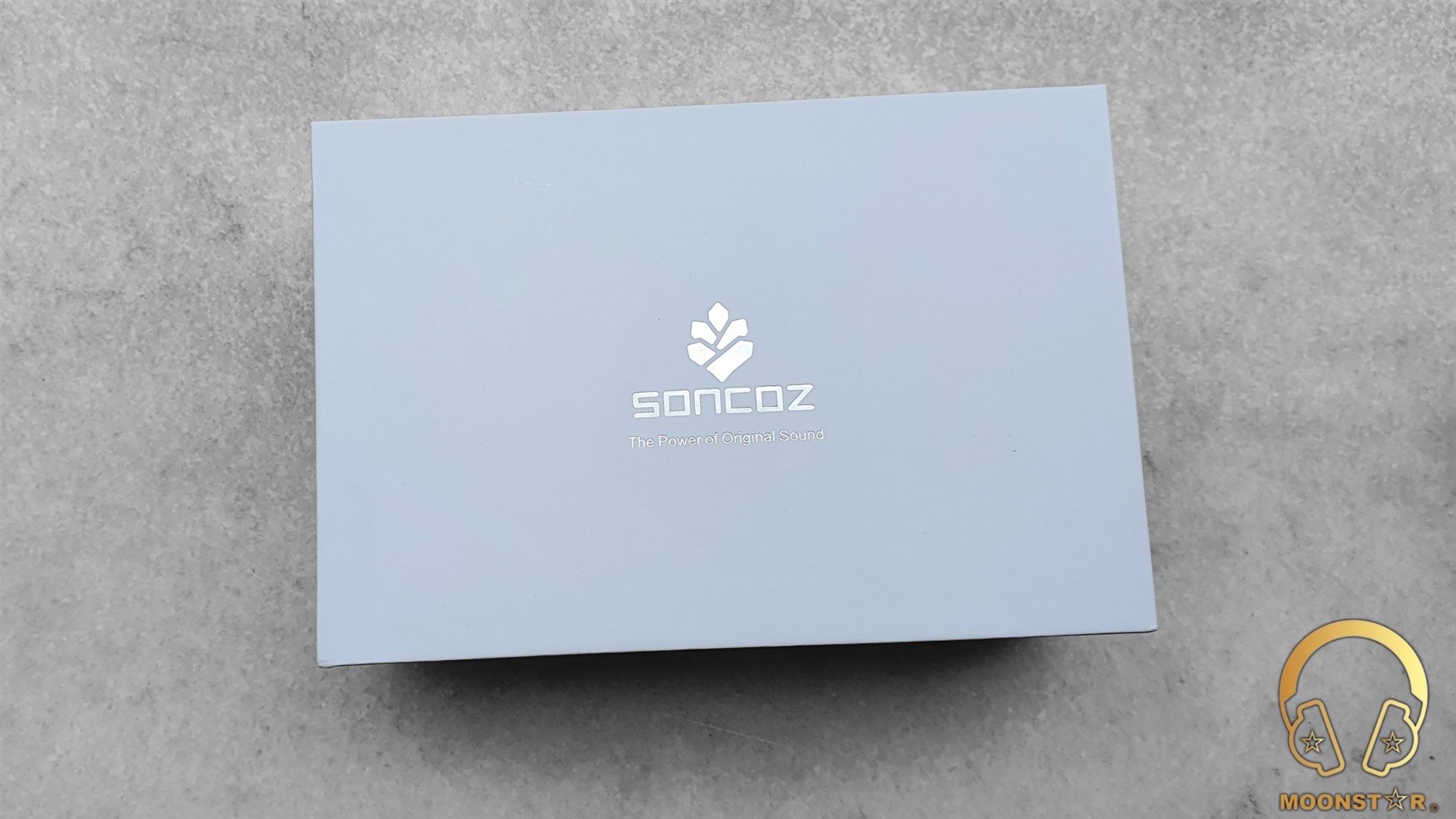 The Soncoz QXA1 came in a pretty small cardboard box in white color with the brand logo on the top in silver color.