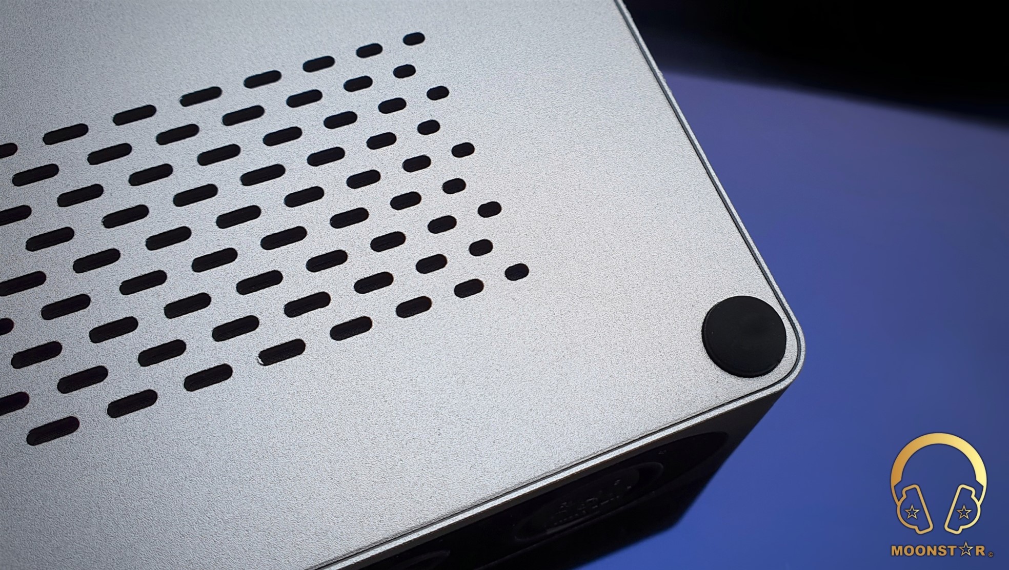 At the bottom of the device is a ventilation outlet and fours stands that do have rubber isolations feet’s.