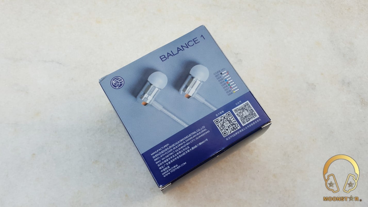The TFZ Balance 1 came in a square cardboard box with a glossy blue surface that sports the product branding in iridescent lettering on the top of this box. On the back of those box is the product illustration and some technical details.