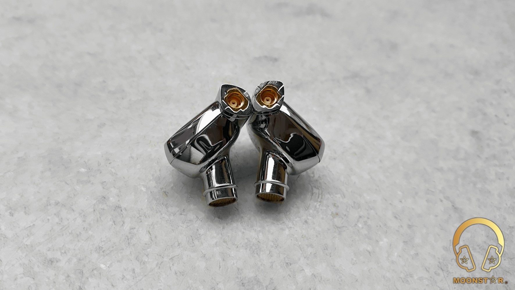 On the top of each monitor shell is the MMCX (Micro Miniature Coaxial) connector for the detachable cable insertion.