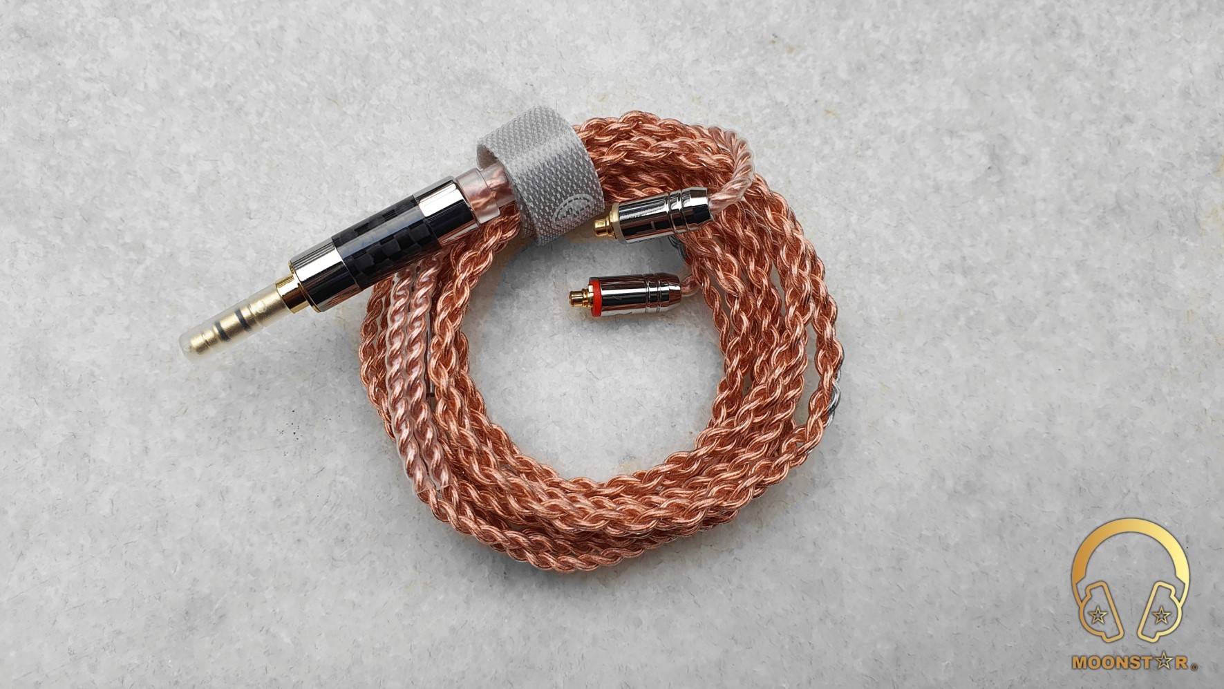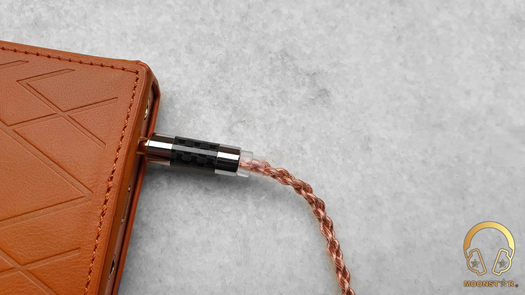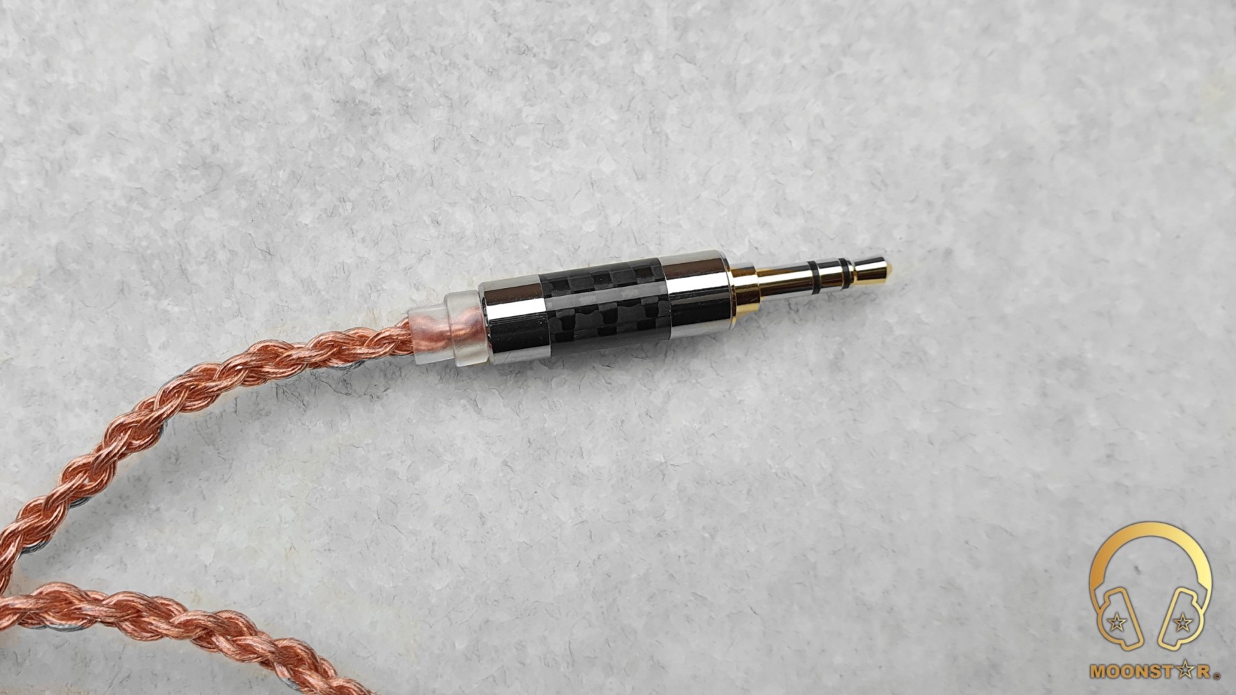 The cable features a 3.5mm Single Ended (TRS) balanced plug with a straight profiled headphone housing made from metal material that a part with a nice carbon fiber pattern.
