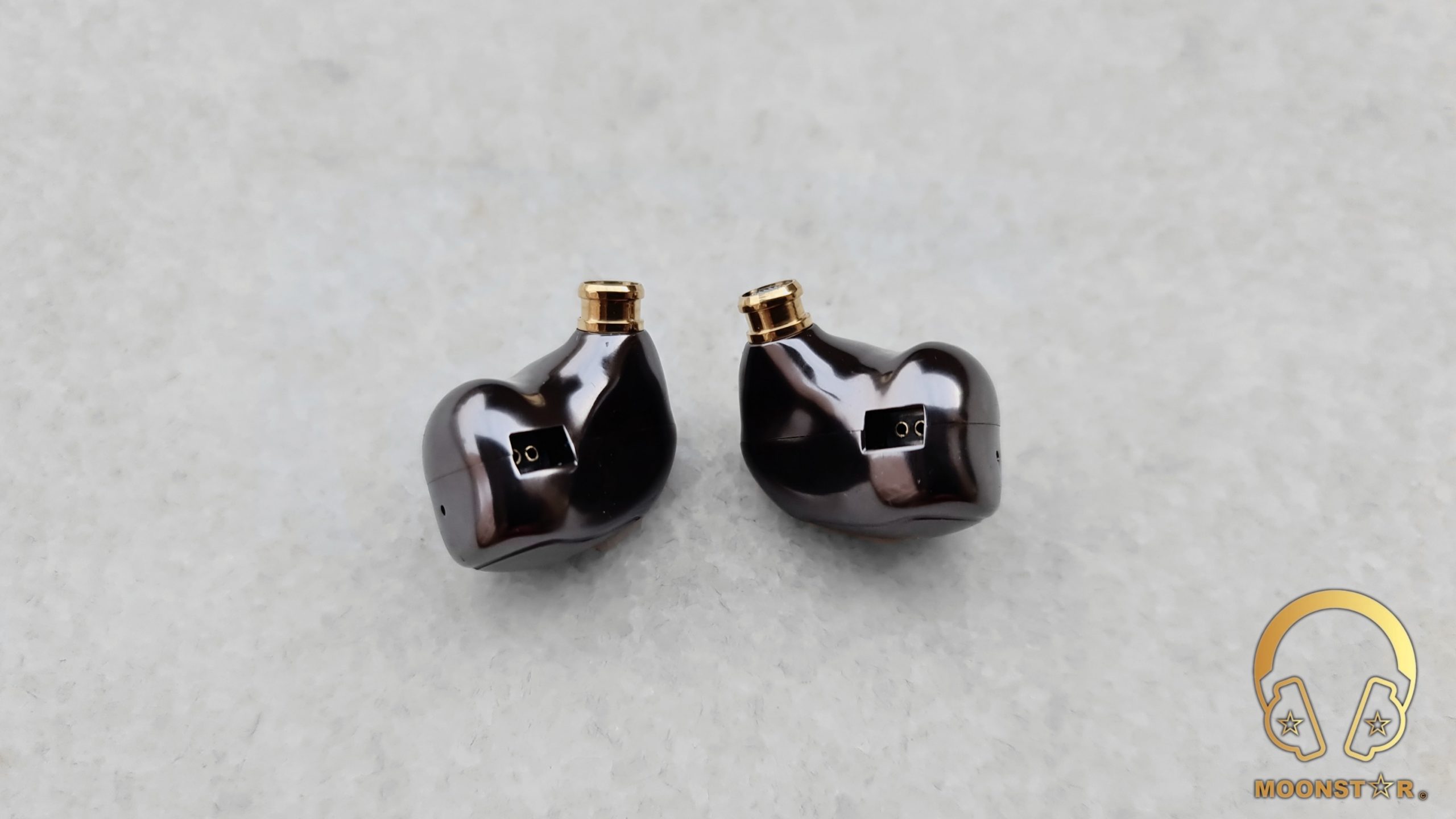 On the top of each monitor shell is a 0.78mm diameter recessed 2-Pin female connector that offers a tight connection to the male 2-Pin connectors.