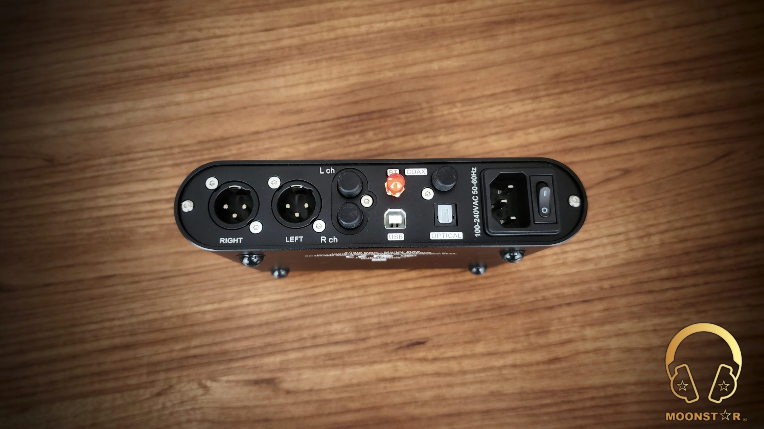 The rear panel of the device features a wide variety of analog and digital interfaces, such like the XLR Balanced + RCA outputs and the USB, Coaxial, Optical and Bluetooth inputs (via Bluetooth Antenna).
