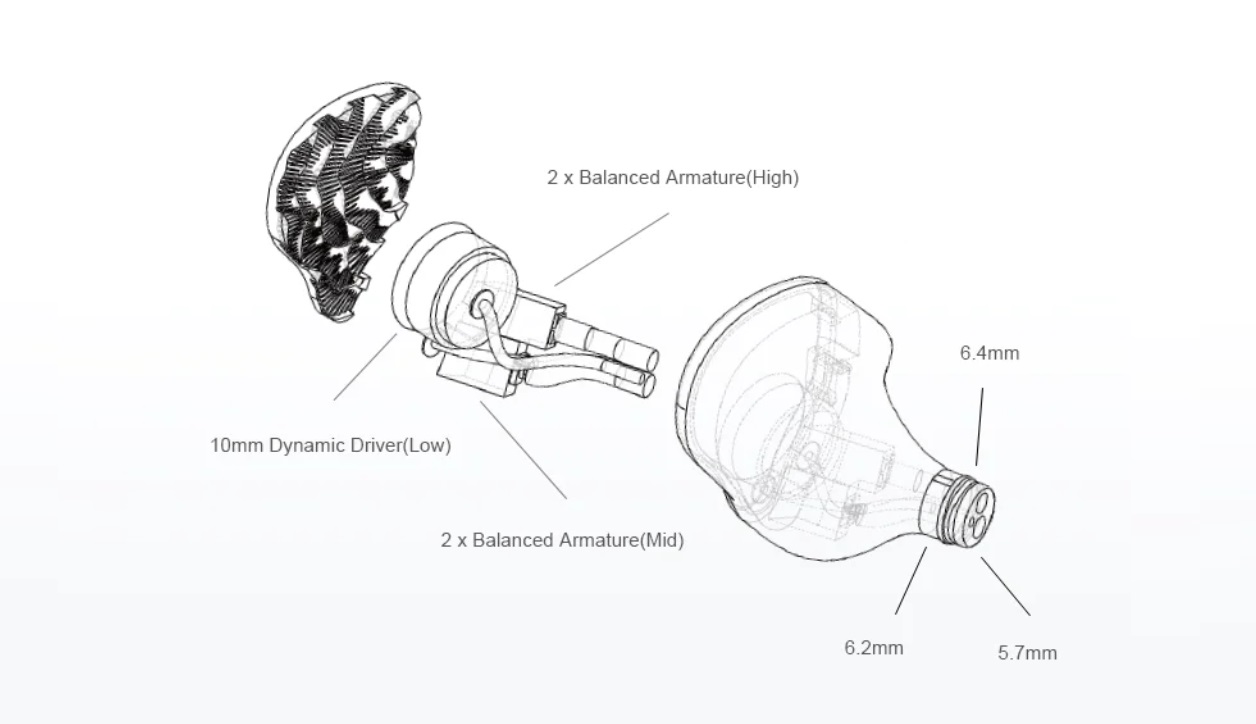 - Driver Configuration : 10mm LCD Diaphragm Dynamic Driver + 4x Balanced Armature Drivers